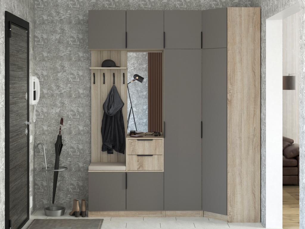 Во вкладке "Выбрать модули" Вы можете подобрать различные по комплектации шкафы, вешалки, угловой элемент. Модульная система поможет подобрать вам необходимые модули, с учетом размеров помещения, планировки.