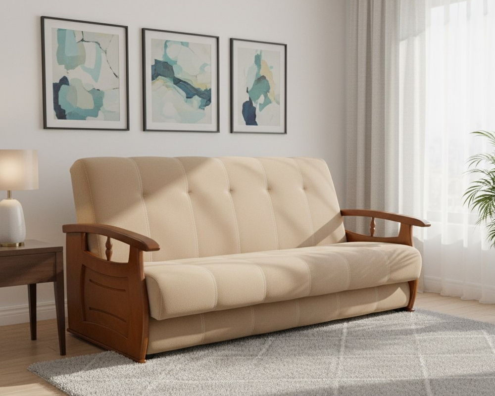 Дизайн дивана "Альтаир" с декоративными деревянными подлокотниками поразит Вас своей красотой.