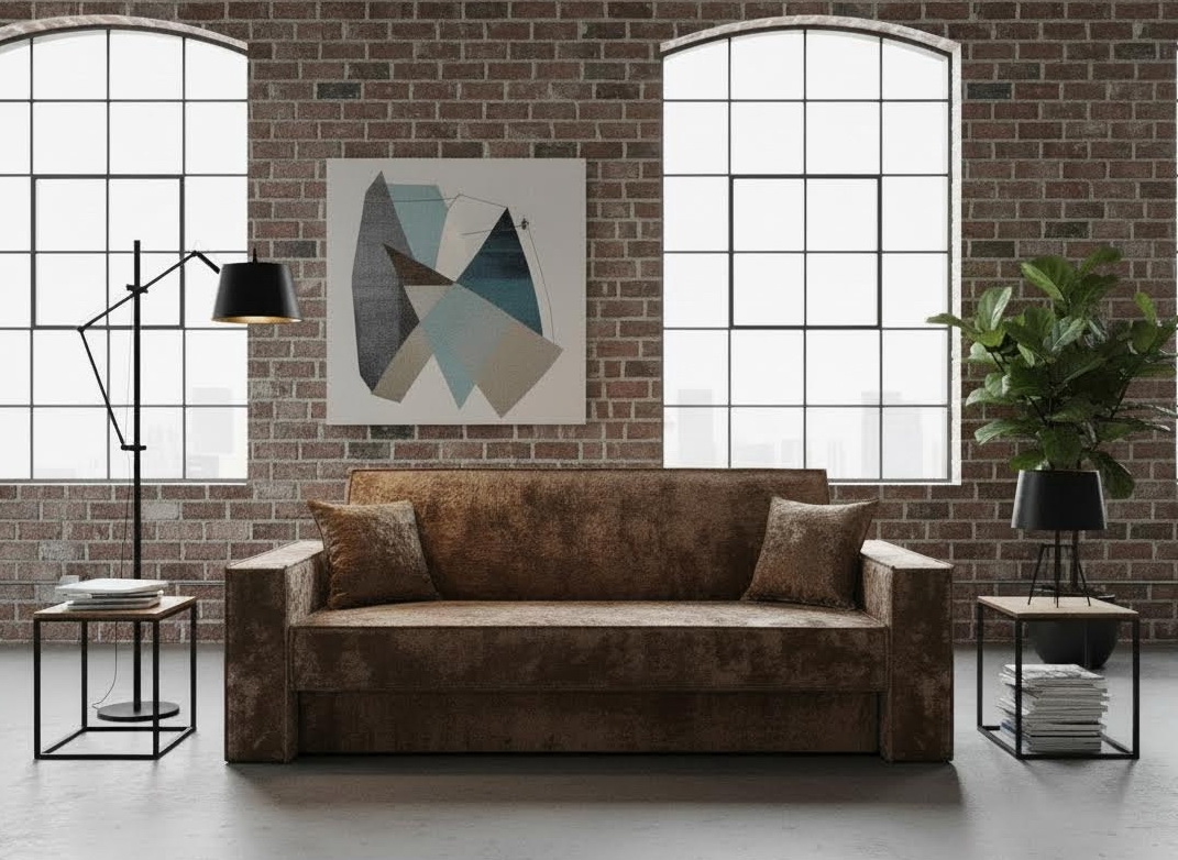 Диван книжка "Лофт с широкими подлокотниками" плюш коричневый купить недорого в Санкт-ПетербургеСтоимость категорий ткани: