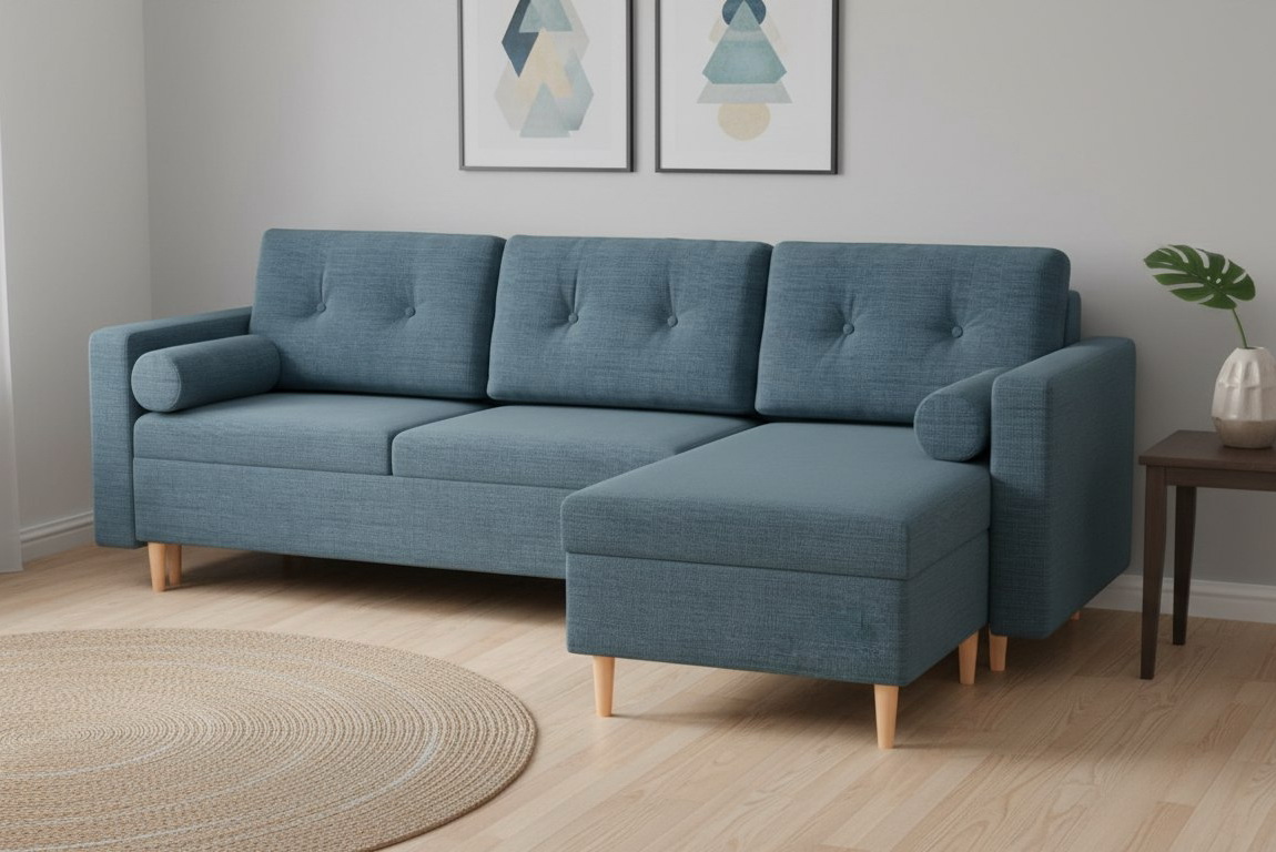 Угловой диван "Белфаст" рогожка дрим блю